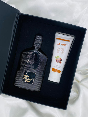 1. Deluxe Gift Set – Includes two inspired perfumes and a luxurious hand lotion